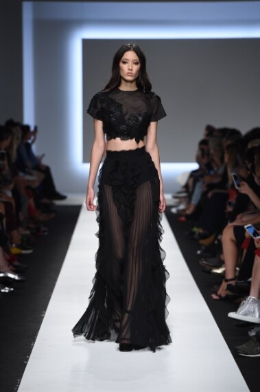 La donna di Ermanno Snervino è femminile anche quando indossa abiti ispirati al guardaroba maschile, come lo spolverino in taglio smoking o le camicie à la garćonne. Il tessuto protagonista è il pizzo che viene spesso sovrapposto per creare sensualità: la silhouette è resa sinuosa da abiti lunghi e morbidi creati con organza e chiffon, ma sono presenti anche le stampe floreali e le ispirazioni safari.