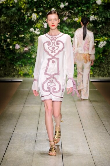 Fantasie floreali, trasparenze e volumi morbidi e sinuosi: è la nuova collezione primaverile di Laura Biagiotti, che per la sua sfilata ci porta in giardino botanico installato all'interno del Piccolo Teatro di Milano. Una collezione esotica, fatta di fiori e leggerezza che vesta la donna di Laura Biagiotti con chiffon e lino, dettagli in pizzo e rouches che richiamano gli anni'70 in modo elegante e sensuale.