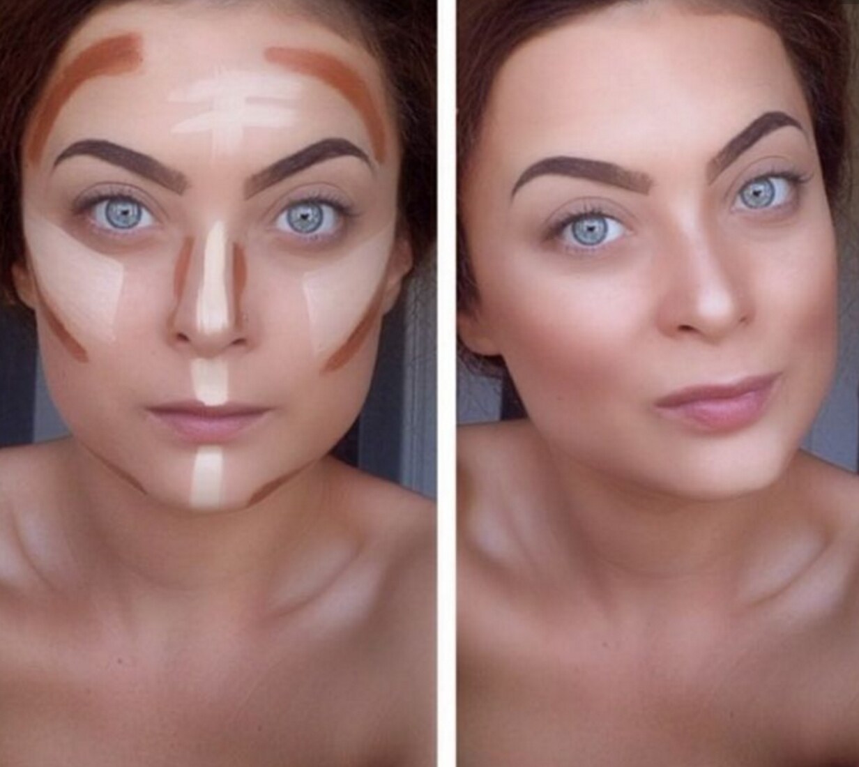 Il contouring è una tra le tecniche di make up più utilizzata del momento: serve per scolpire il volto e creare i volumi del viso ed è amatissima da star come Kim Kardashian. Per realizzarla hai bisogno di una terra opaca marrone e di un illuminante, che possono essere in polvere o in crema, a seconda dell'effetto che vuoi ottenere. Ecco come cambiano i volti dopo il make up.