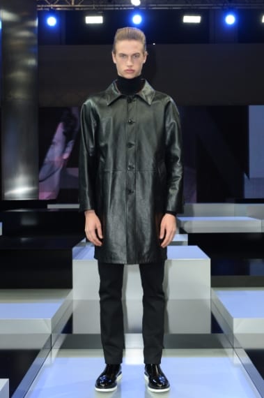 Le linee slim degli abiti tuxedo in total black si contrappongono alle forme over dei soprabiti in pelle sulla passerella maschile di Hogan, brand che nella collezione Autunno/Inverno 2016-17 propone i volti opposti di un uomo trendy ed elegante, un uomo che ama essere sobrio indossando completi scuri e sneakers comode ma allo stesso tempo ama brillare indossando lucenti cappotti in silver e scarpe in vernice.