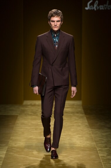 E' un uomo elegante e sicuro, classico e moderno, forte ma con un animo gentile quello che sfila sulla passerella Autunno/Inverno 2016- 2017 di Salvatore Ferragamo. Massimiliano Giornetti, art director della storica Maison italiana, disegna una splendida collezione in cui capi senza tempo, come il camel coat e il classico abito check doppiopetto, convivono con pezzi di tendenza, come il bomber o come originali pullover con decori ispirati ad opere d'arte moderna, in un continuo rimando tra passato e presente, in cui gli opposti creano lo stile perfetto dell'uomo del futuro.