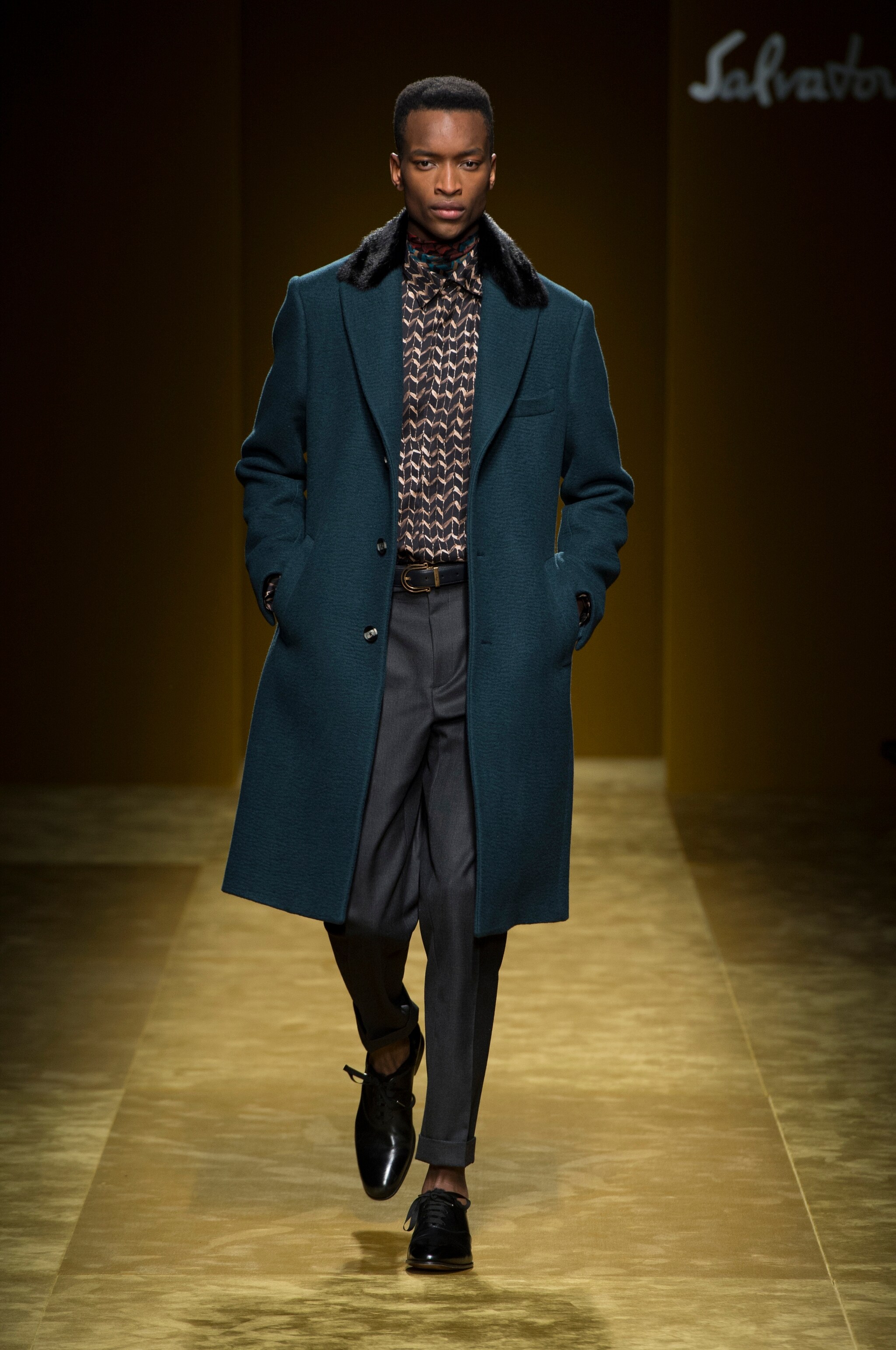 E' un uomo elegante e sicuro, classico e moderno, forte ma con un animo gentile quello che sfila sulla passerella Autunno/Inverno 2016- 2017 di Salvatore Ferragamo. Massimiliano Giornetti, art director della storica Maison italiana, disegna una splendida collezione in cui capi senza tempo, come il camel coat e il classico abito check doppiopetto, convivono con pezzi di tendenza, come il bomber o come originali pullover con decori ispirati ad opere d'arte moderna, in un continuo rimando tra passato e presente, in cui gli opposti creano lo stile perfetto dell'uomo del futuro.