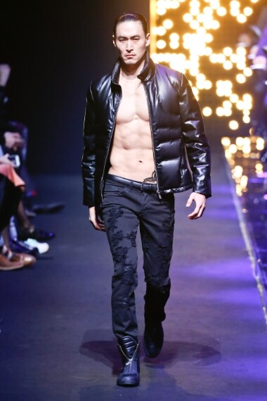 Sulla passerella Autunno/Inverno 2016-2017 di Dirk Bikkembergs sfila un sexy motociclista con addominali in mostra che indossa chiodi in pelle, pantaloni ultra aderenti, giacche di pelliccia e smanicati che lasciano scoperti i bicipiti.