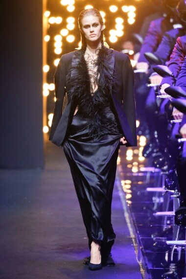 Sulla passerella Autunno/Inverno 2016-2017 di Dirk Bikkembergs sfila un sexy motociclista con addominali in mostra che indossa chiodi in pelle, pantaloni ultra aderenti, giacche di pelliccia e smanicati che lasciano scoperti i bicipiti.