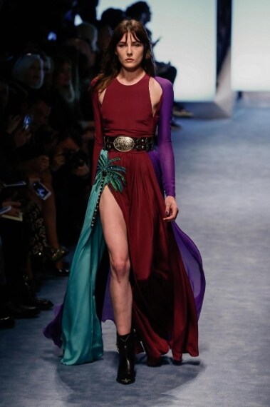 Palme ricamate o stampate, affascinanti di color block, sensuali spacchi e cappellini in lana abbinati a stivaletti camperos sfilano sulla passerella Autunno/Inverno 2016-2017 di Fausto Puglisi, designer che alla Milano Fashion Week propone una donna dallo stile trendy e sensuale, originale e ricercato.