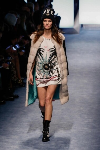 Palme ricamate o stampate, affascinanti di color block, sensuali spacchi e cappellini in lana abbinati a stivaletti camperos sfilano sulla passerella Autunno/Inverno 2016-2017 di Fausto Puglisi, designer che alla Milano Fashion Week propone una donna dallo stile trendy e sensuale, originale e ricercato.