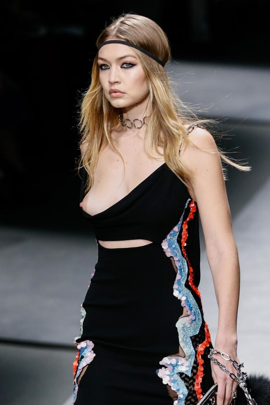 Incidente hot per la top model del momento Gigi Hadid protagonista della sfilata Autunno/Inverno 2016-17 di Versace tenutasi nel terzo giorno della Milano Fashion Week. In passerella la modella ha mostrato troppo di sé, colpa dell'abito troppo scollato che metteva in bella mostra il seno