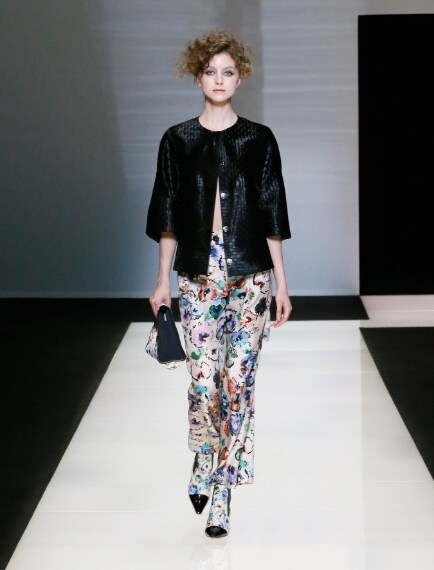 Il velluto è il protagonista sulla passerella Autunno/Inverno 2016-17 di Giorgio Armani che alla Milano Fashion Week presenta dai colori scuri in cui completi che sembrano rubati al guardaroba femminile si alternano ad abiti iperfemminili decorati con tulle, pizzi, trasparenze fantasie floreali astratte