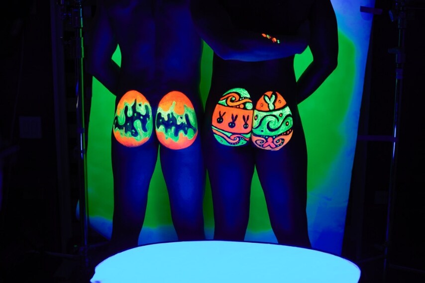 I glutei maschili vengono trasformati in uova di Pasqua con la body art