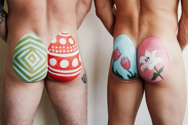 I glutei maschili vengono trasformati in uova di Pasqua con la body art