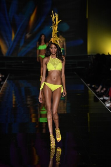 Calzedonia ha presentato con una sfilata la sua nuova collezione di costumi disegnati per l'estate 2016. Bikini con triangolo e brasiliana o perizoma, top a fascia o con push up, costumi interi, trikini e midkini, tutti sono decorati con fantasie allegre, colori accesi, frange o sono realizzati in tessuti total black. Ecco i modelli di costumi per l'estate 2016 di Calzedonia
