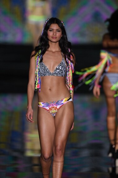 Calzedonia ha presentato con una sfilata la sua nuova collezione di costumi disegnati per l'estate 2016. Bikini con triangolo e brasiliana o perizoma, top a fascia o con push up, costumi interi, trikini e midkini, tutti sono decorati con fantasie allegre, colori accesi, frange o sono realizzati in tessuti total black. Ecco i modelli di costumi per l'estate 2016 di Calzedonia