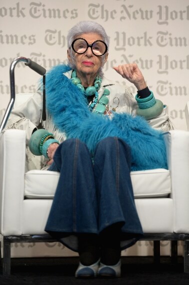 Iris Apfel ha cambiato le regole della moda diventato la modella più anziana del mondo. Neanche passati i 100 anni ha mai rinunciato al rossetto rosso e ai look sopra le righe, espressione di una sincera gioia nel vestirsi. La sua filosofia di vita impressa in uno stile fatto di colori e abbinamenti audaci, sempre diverso ma ogni volta riconoscibile.