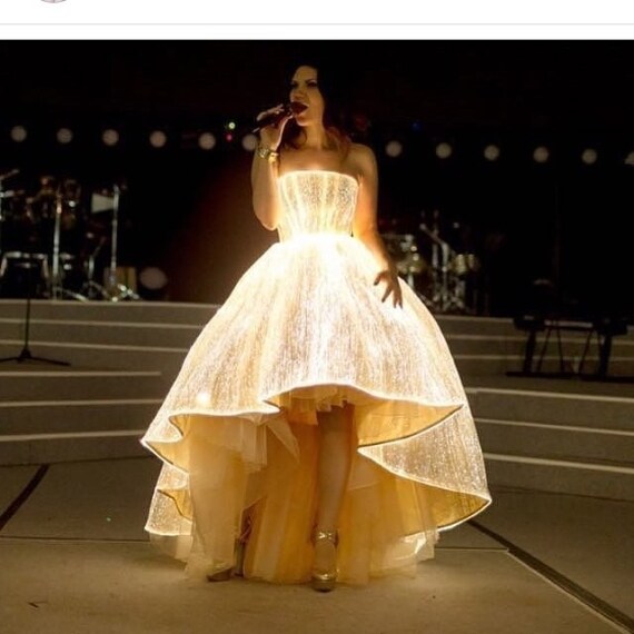 In occasione del Simili tour, che ha debuttato a Milano il 4 giugno, Laura Pausini si è presentata sul palco con dei look incredibilmente glamour. Uno degli abiti più belli è quello realizzato da Byblos Milano con lo speciale tessuto luminoso in fibra ottica Dreamlux. E' stato capace di far brillare l'artista.