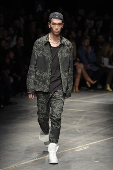 Culture diverse, ispirazioni opposte, stili distanti si mescolano e si uniscono sulla passerella Primavera/Estate 2017 di Marcelo Burlon County of Milan, brand che disegna un guardaroba "multiculturale" che sfrutta il meltin pot come una forza, una base su cui costruire l'immagine di un uomo e di una donna dalla forte personalità, dallo stile stratificato. Numeri, intrecci grafici di stelle ninja con i simboli della Patagonia, marchio di fabbrica del brand, spuntano su maxi shirt, felpe, bermuda e bomber, mentre i completi kimono restano puliti in total black. A completare i look sandali intrecciati, ciabatte indossate su calzettoni sporty di spugna e boots stringati dalla suola carro armato.