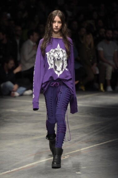 Culture diverse, ispirazioni opposte, stili distanti si mescolano e si uniscono sulla passerella Primavera/Estate 2017 di Marcelo Burlon County of Milan, brand che disegna un guardaroba "multiculturale" che sfrutta il meltin pot come una forza, una base su cui costruire l'immagine di un uomo e di una donna dalla forte personalità, dallo stile stratificato. Numeri, intrecci grafici di stelle ninja con i simboli della Patagonia, marchio di fabbrica del brand, spuntano su maxi shirt, felpe, bermuda e bomber, mentre i completi kimono restano puliti in total black. A completare i look sandali intrecciati, ciabatte indossate su calzettoni sporty di spugna e boots stringati dalla suola carro armato.