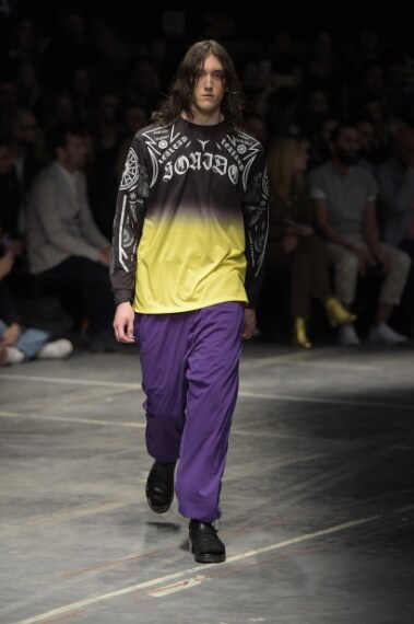 Culture diverse, ispirazioni opposte, stili distanti si mescolano e si uniscono sulla passerella Primavera/Estate 2017 di Marcelo Burlon County of Milan, brand che disegna un guardaroba "multiculturale" che sfrutta il meltin pot come una forza, una base su cui costruire l'immagine di un uomo e di una donna dalla forte personalità, dallo stile stratificato. Numeri, intrecci grafici di stelle ninja con i simboli della Patagonia, marchio di fabbrica del brand, spuntano su maxi shirt, felpe, bermuda e bomber, mentre i completi kimono restano puliti in total black. A completare i look sandali intrecciati, ciabatte indossate su calzettoni sporty di spugna e boots stringati dalla suola carro armato.