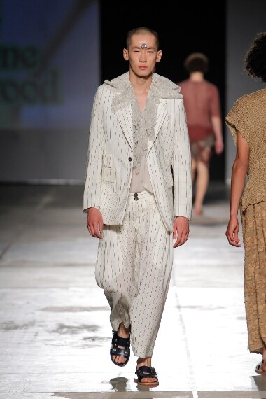 Unisex, senza sesso, no gender: Vivienne Westwood porta alla fashion week di Milano il suo stile senza confini, in cui maschile e femminile si confondono. Per la Primavera/Estate 2017 la stilista propone completi gessati extra large, morbide bluse da indossare su pantaloni crop e gonne, bermuda, canotte e completi di maglia a rete. A completare i look ciabatte raso terra