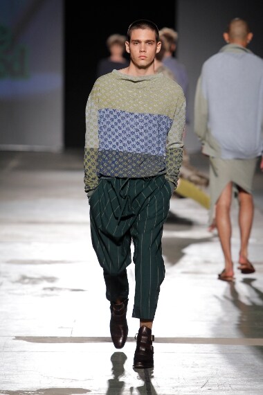 Unisex, senza sesso, no gender: Vivienne Westwood porta alla fashion week di Milano il suo stile senza confini, in cui maschile e femminile si confondono. Per la Primavera/Estate 2017 la stilista propone completi gessati extra large, morbide bluse da indossare su pantaloni crop e gonne, bermuda, canotte e completi di maglia a rete. A completare i look ciabatte raso terra