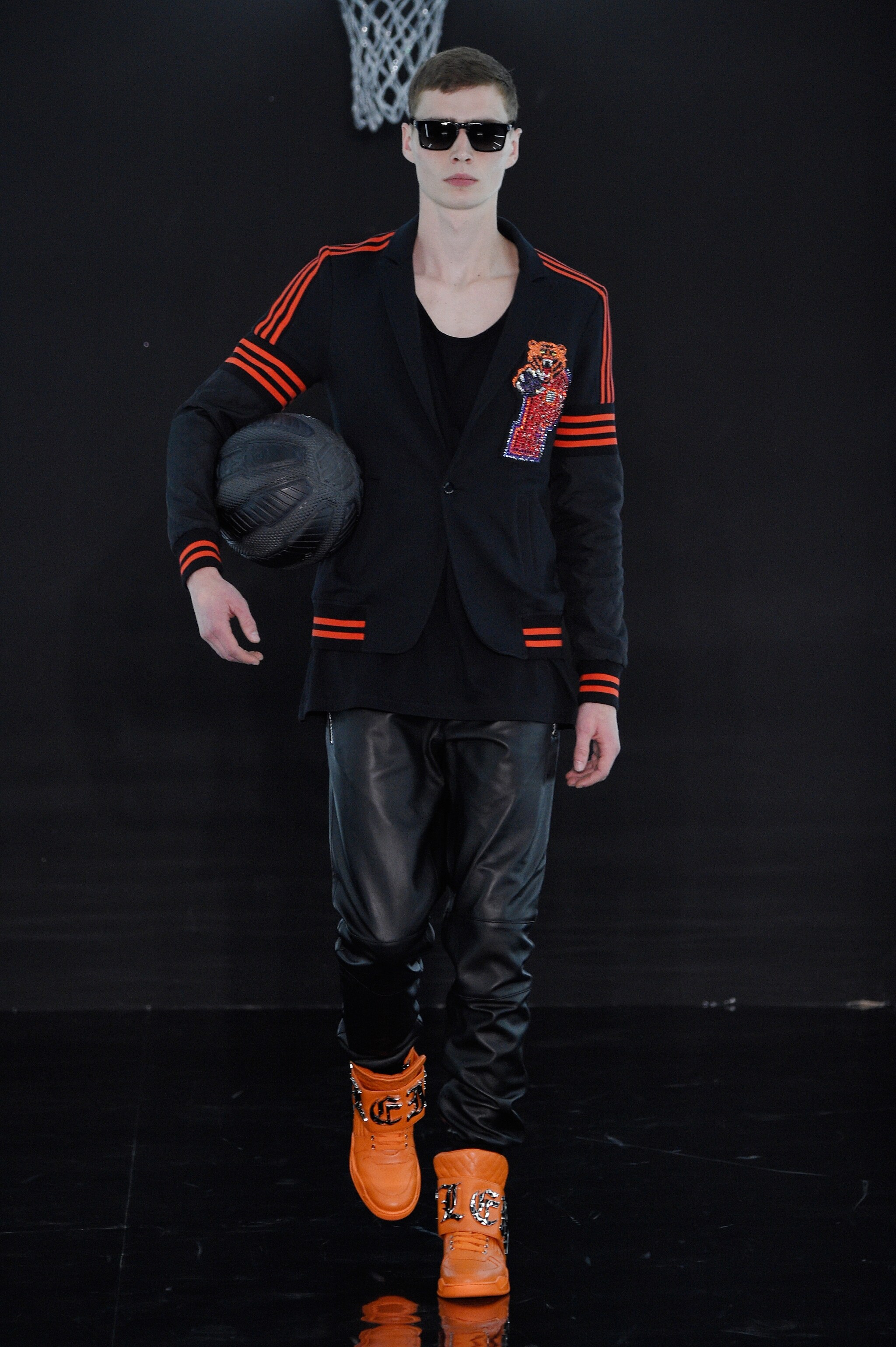 Il mondo del basket americano e delle grandi squadre rivive sulla passerella uomo Primavera/Estate 2017 di Philipp Plein, stilista che alla Fashion Week di Milano presenta una collezione composta da capi vistosi decorati da maxi stampe, applicazioni lucenti, da bomber, bermuda e giacche in pelle, il tutto condito con sneakers dalla suola luminosa o con maxi logo.