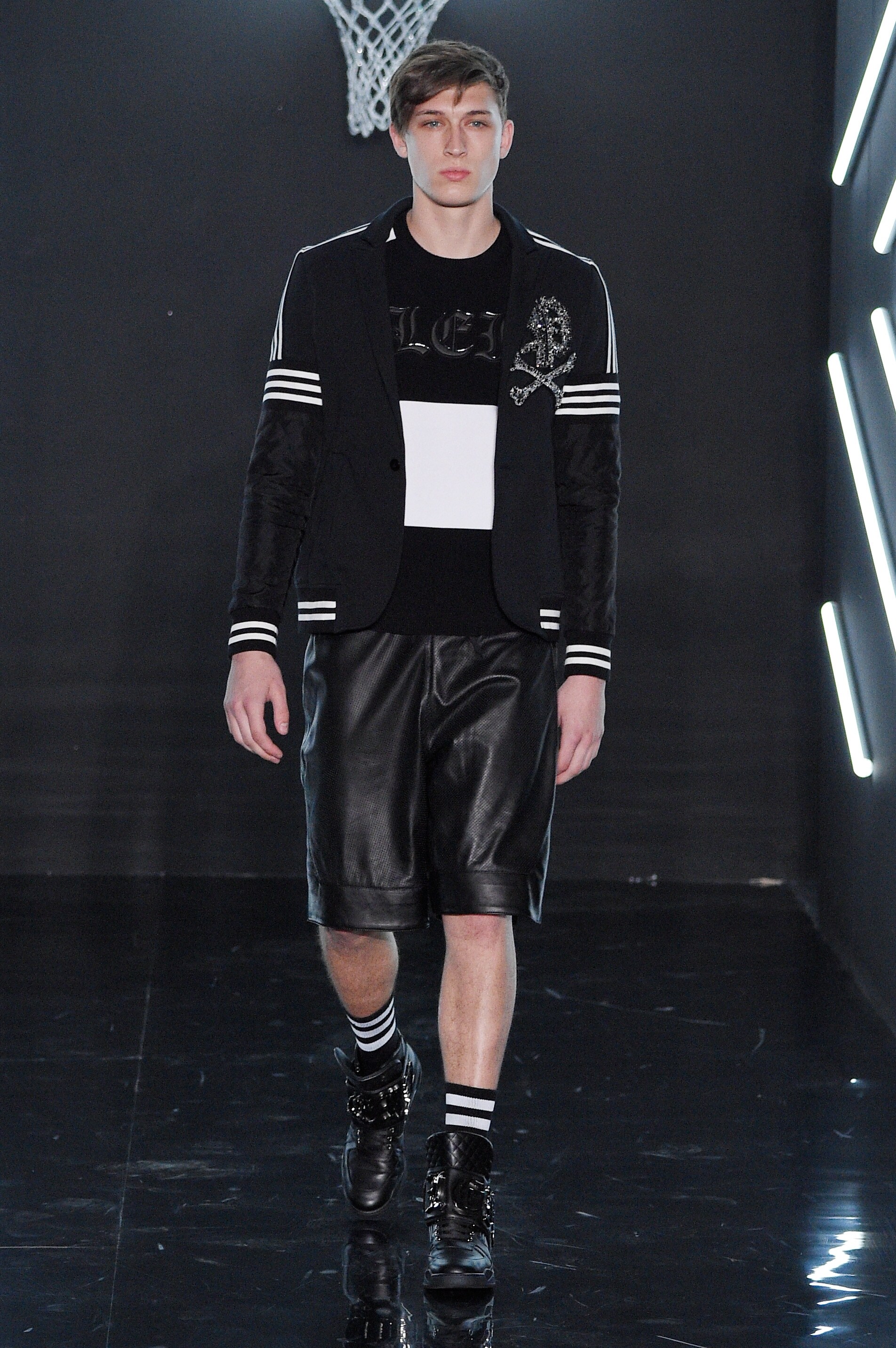 Il mondo del basket americano e delle grandi squadre rivive sulla passerella uomo Primavera/Estate 2017 di Philipp Plein, stilista che alla Fashion Week di Milano presenta una collezione composta da capi vistosi decorati da maxi stampe, applicazioni lucenti, da bomber, bermuda e giacche in pelle, il tutto condito con sneakers dalla suola luminosa o con maxi logo.