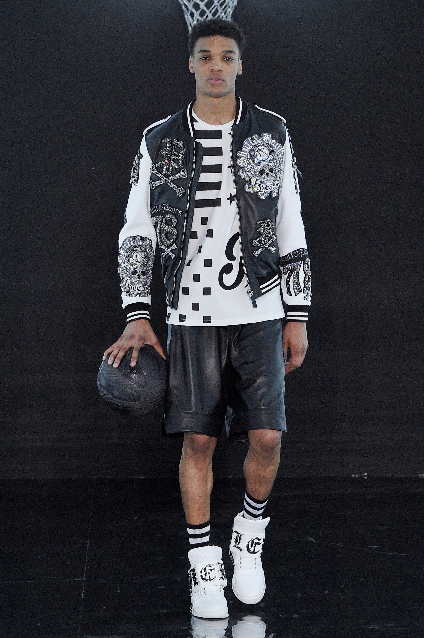 Il mondo del basket americano e delle grandi squadre rivive sulla passerella uomo Primavera/Estate 2017 di Philipp Plein, stilista che alla Fashion Week di Milano presenta una collezione composta da capi vistosi decorati da maxi stampe, applicazioni lucenti, da bomber, bermuda e giacche in pelle, il tutto condito con sneakers dalla suola luminosa o con maxi logo.