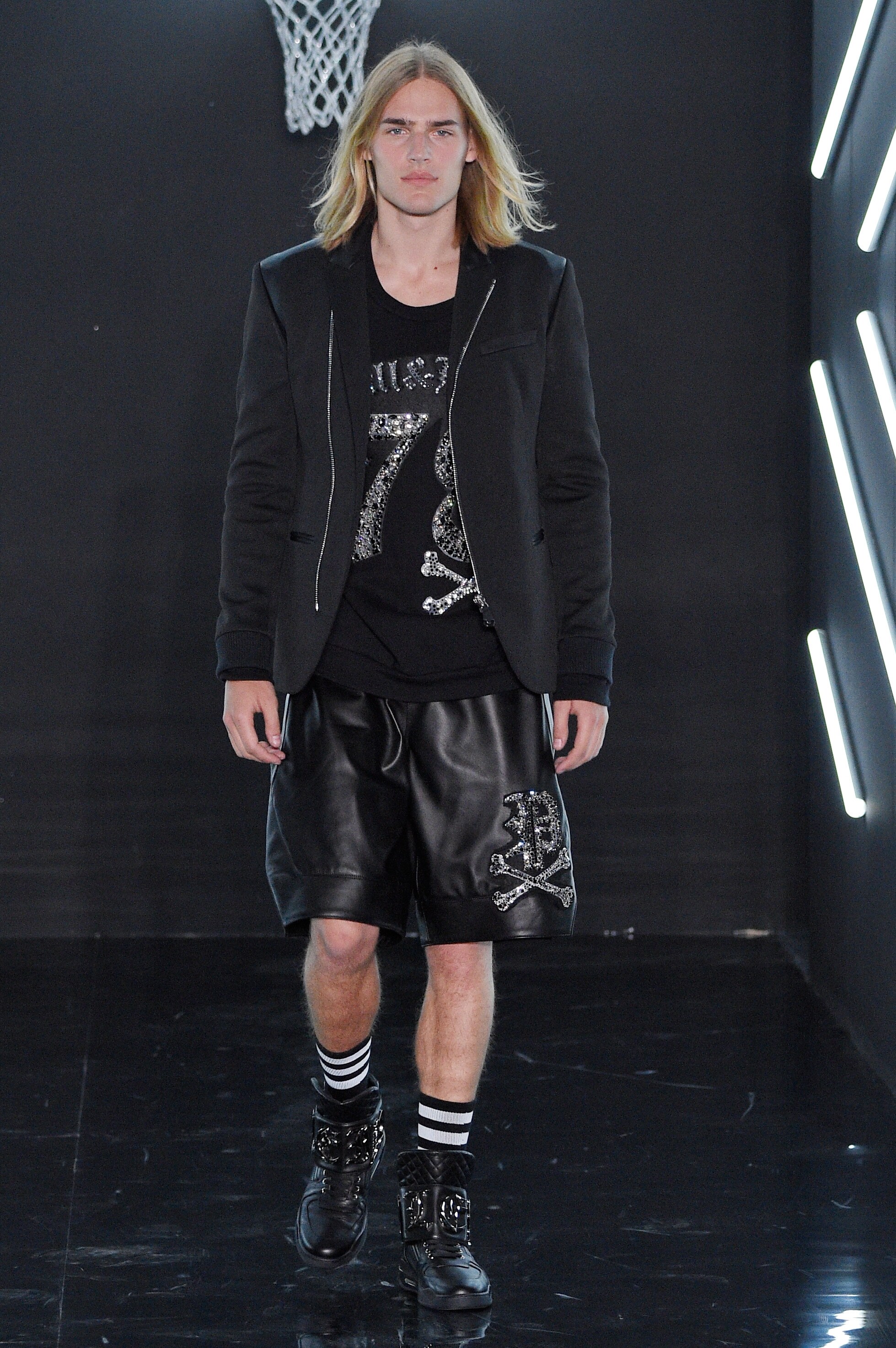 Il mondo del basket americano e delle grandi squadre rivive sulla passerella uomo Primavera/Estate 2017 di Philipp Plein, stilista che alla Fashion Week di Milano presenta una collezione composta da capi vistosi decorati da maxi stampe, applicazioni lucenti, da bomber, bermuda e giacche in pelle, il tutto condito con sneakers dalla suola luminosa o con maxi logo.