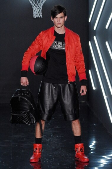 Il mondo del basket americano e delle grandi squadre rivive sulla passerella uomo Primavera/Estate 2017 di Philipp Plein, stilista che alla Fashion Week di Milano presenta una collezione composta da capi vistosi decorati da maxi stampe, applicazioni lucenti, da bomber, bermuda e giacche in pelle, il tutto condito con sneakers dalla suola luminosa o con maxi logo.