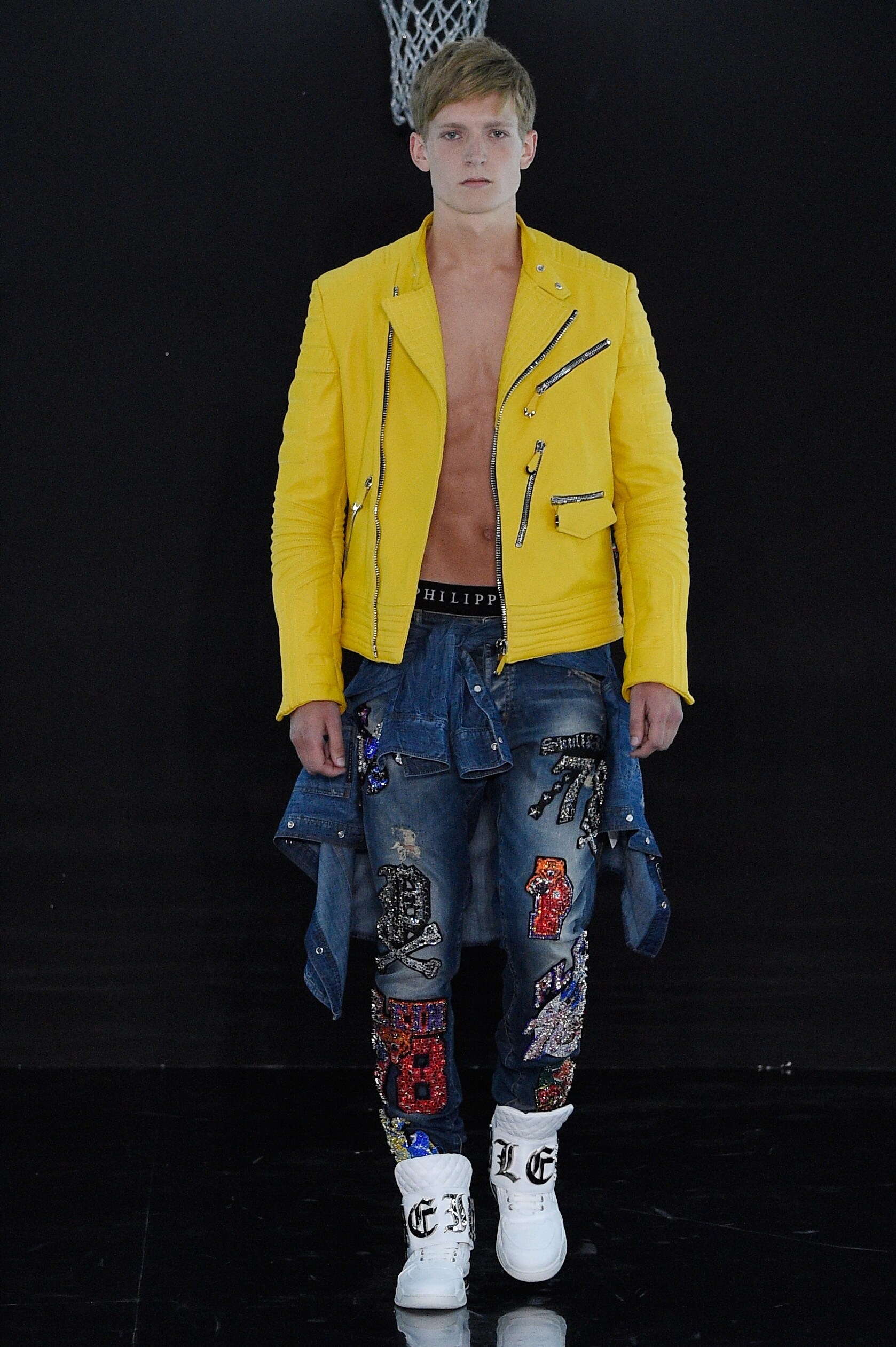 Il mondo del basket americano e delle grandi squadre rivive sulla passerella uomo Primavera/Estate 2017 di Philipp Plein, stilista che alla Fashion Week di Milano presenta una collezione composta da capi vistosi decorati da maxi stampe, applicazioni lucenti, da bomber, bermuda e giacche in pelle, il tutto condito con sneakers dalla suola luminosa o con maxi logo.