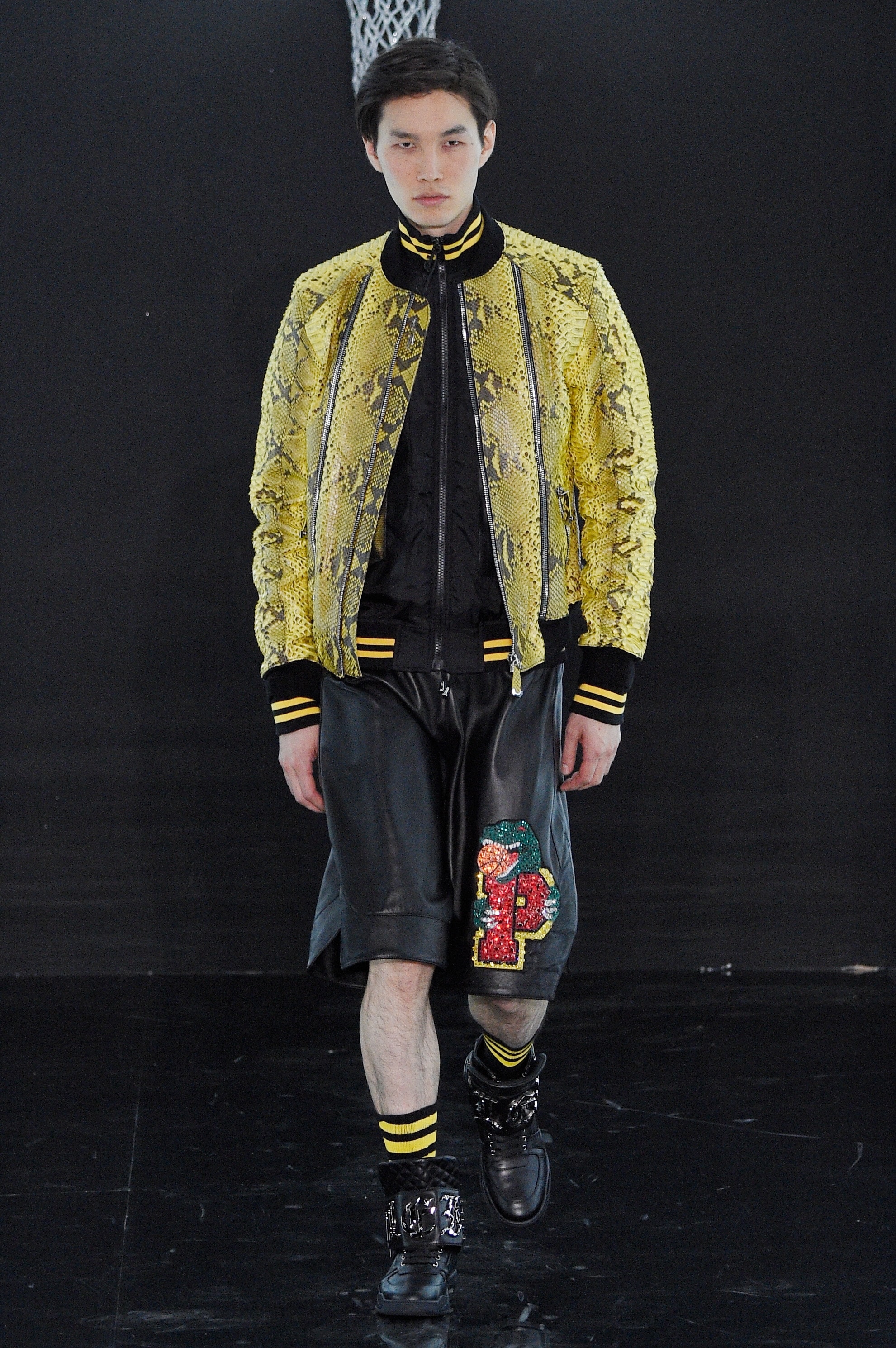 Il mondo del basket americano e delle grandi squadre rivive sulla passerella uomo Primavera/Estate 2017 di Philipp Plein, stilista che alla Fashion Week di Milano presenta una collezione composta da capi vistosi decorati da maxi stampe, applicazioni lucenti, da bomber, bermuda e giacche in pelle, il tutto condito con sneakers dalla suola luminosa o con maxi logo.