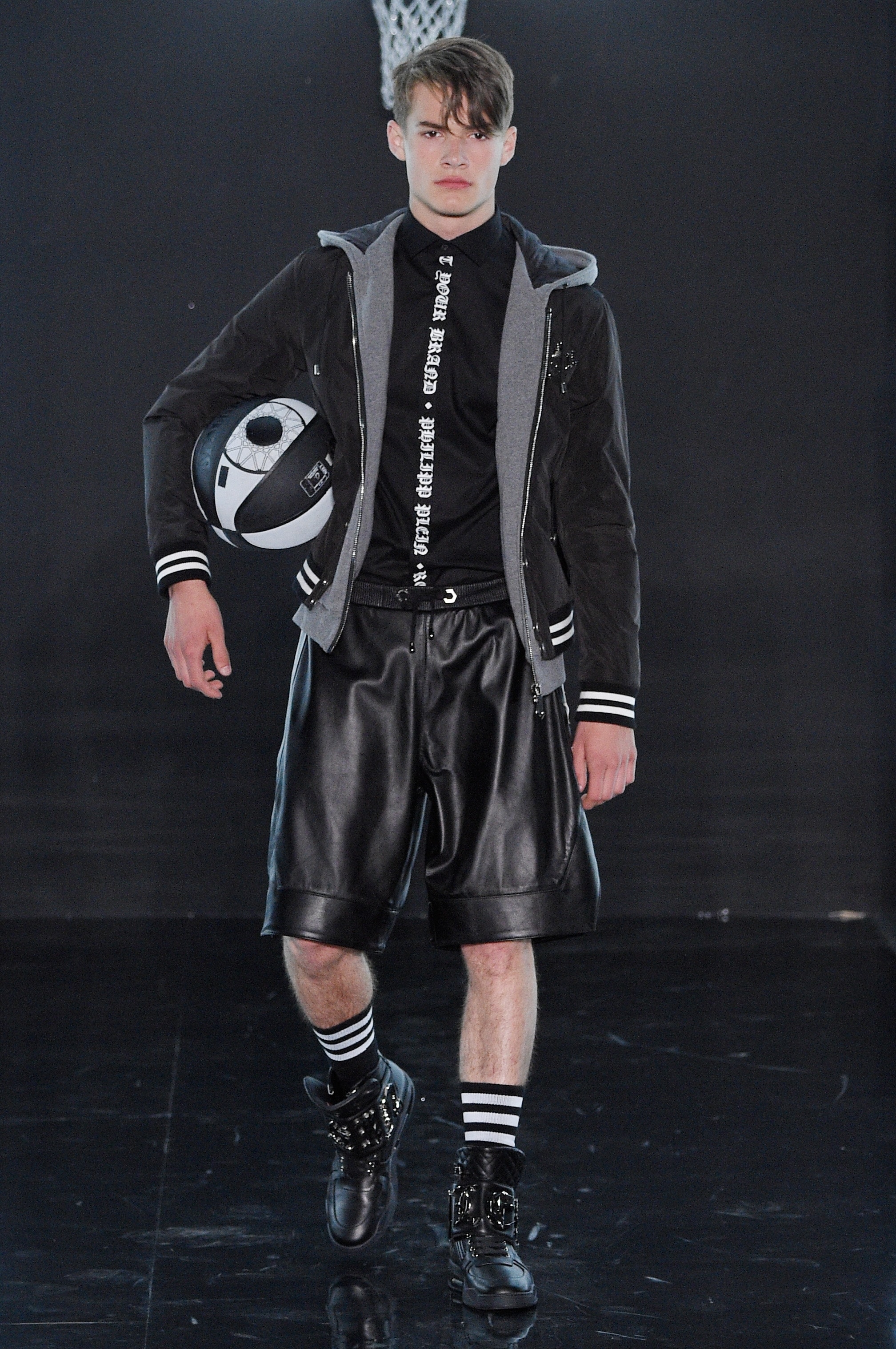 Il mondo del basket americano e delle grandi squadre rivive sulla passerella uomo Primavera/Estate 2017 di Philipp Plein, stilista che alla Fashion Week di Milano presenta una collezione composta da capi vistosi decorati da maxi stampe, applicazioni lucenti, da bomber, bermuda e giacche in pelle, il tutto condito con sneakers dalla suola luminosa o con maxi logo.