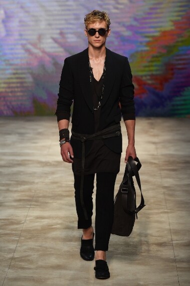 Un dandy inglese vola in India per un viaggio culturale, il suo stile fatto di eleganti abiti check e mocassini viene contaminato con cinture indossate sulle lunghe giacche, con collane, bracciali e sciarpe indossate su morbide bluse, ecco lo scenario della collezione uomo Primavera/Estate 2017 pensato dal designer Filippo Scuffi per il marchio Daks.