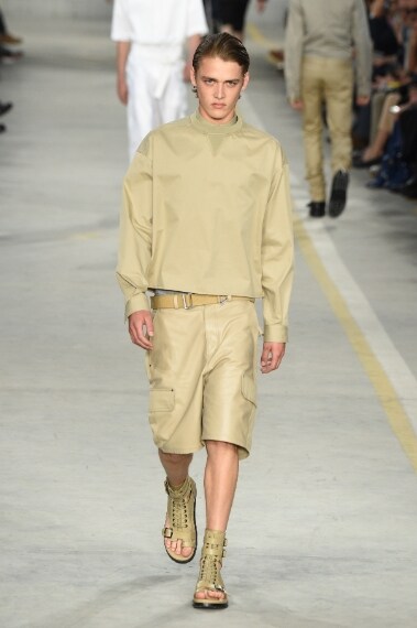Linee slim contrapposte a silhouette extra large, colori tenui, come il bianco il beige e il cipria, contrapposti a tonalità scure e decise di blu notte e nero si alternano sulla passerella uomo Primavera/Estate 2017 di Diesel Black Gold.