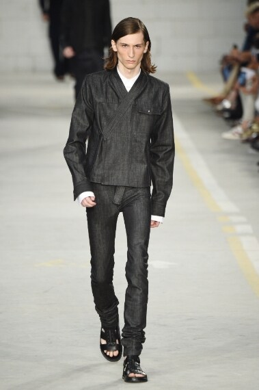 Linee slim contrapposte a silhouette extra large, colori tenui, come il bianco il beige e il cipria, contrapposti a tonalità scure e decise di blu notte e nero si alternano sulla passerella uomo Primavera/Estate 2017 di Diesel Black Gold.