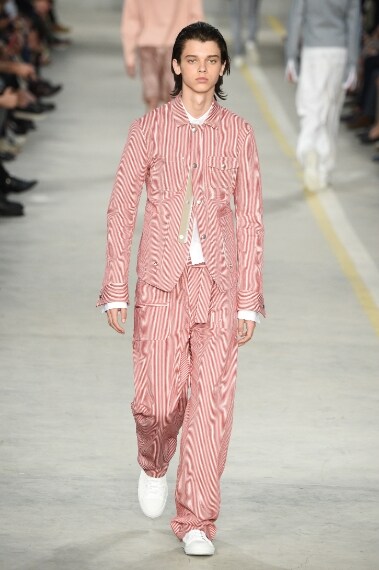 Linee slim contrapposte a silhouette extra large, colori tenui, come il bianco il beige e il cipria, contrapposti a tonalità scure e decise di blu notte e nero si alternano sulla passerella uomo Primavera/Estate 2017 di Diesel Black Gold.