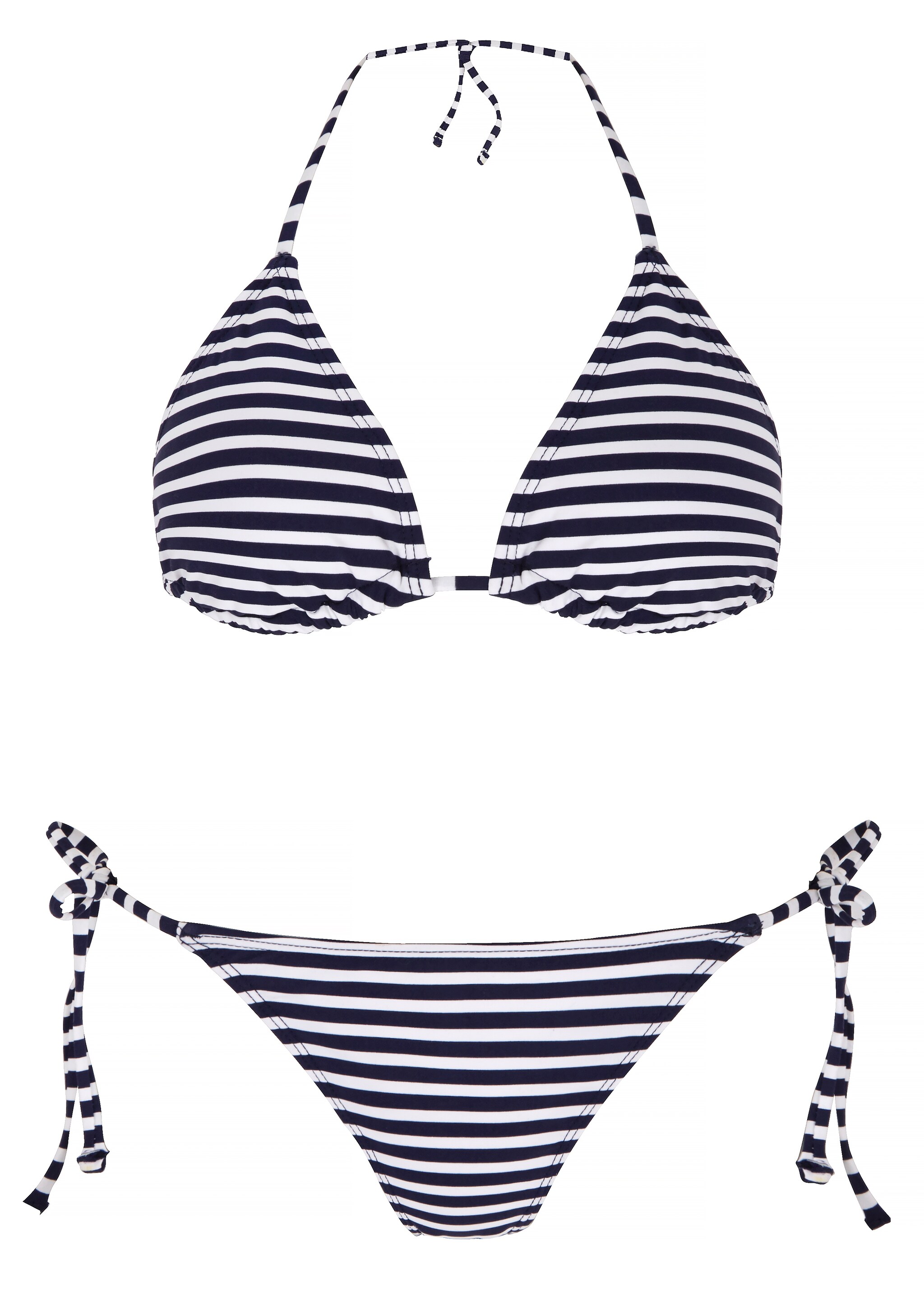 I bikini a triangolo sono un must per l'estate, un vero e proprio evergreen che non passa mai di moda. Esistono modelli "mini" con coppe a triangolo o due pezzi con top dal triangolo più alto e lungo che sostiene maggiormente il seno. Per l'estate 2016 i marchi di moda e quelli low cost propongono fantasiose varianti di bikini a triangolo con stampe colorate o righe yachting, modelli in bianco, rosa e rosso o coperti da lucenti prints ikat.