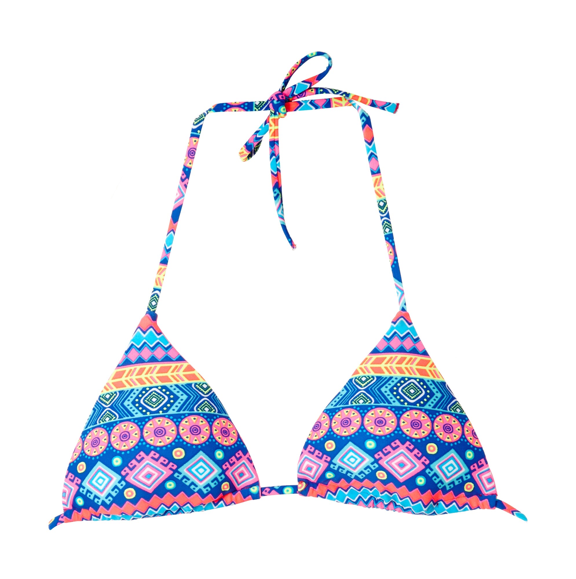 I bikini a triangolo sono un must per l'estate, un vero e proprio evergreen che non passa mai di moda. Esistono modelli "mini" con coppe a triangolo o due pezzi con top dal triangolo più alto e lungo che sostiene maggiormente il seno. Per l'estate 2016 i marchi di moda e quelli low cost propongono fantasiose varianti di bikini a triangolo con stampe colorate o righe yachting, modelli in bianco, rosa e rosso o coperti da lucenti prints ikat.