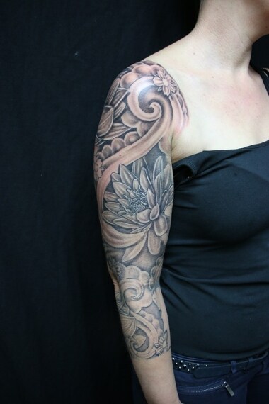 • Tatuaggio con fiore di loto in bianco e nero stile dark