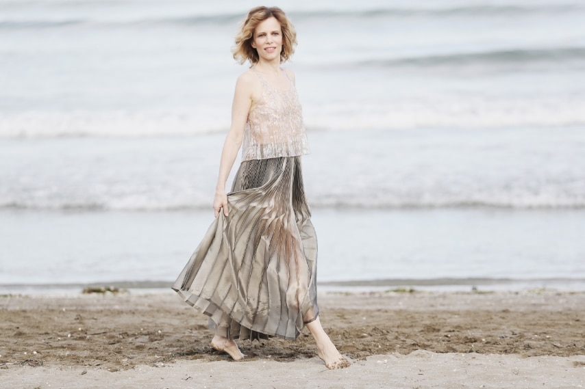 • Cristiana Capotondi in Stella McCartney con scarpe Ferragamo e gioielli Ca&Lou