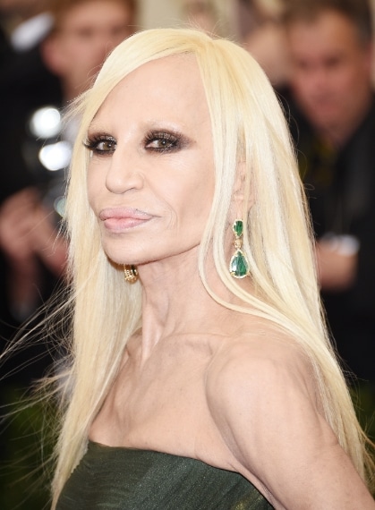 Capelli biondo platino, sguardo sempre in primo piano e carisma da vendere: lei è Donatella Versace, sorella del celebre stilista Gianni scomparso prematuramente nel 1997. Conosciuta in tutto il mondo per i suoi abiti meravigliosi, fa spesso parlare di sè per via del suo aspetto. È innegabile infatti che Donatella sia ricorsa più di una volta al ritocchino e all'intervento del chirurgo estetico, trasformando del tutto il suo volto.