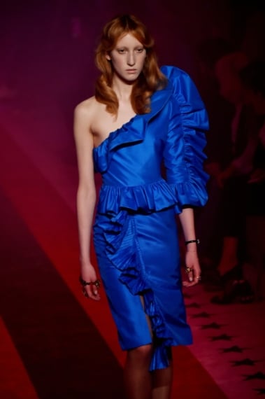Nel primo giorno della Milano Fashion Week, la Maison Gucci ha presentato la nuova collezione Primavera/Estate 2017, disegnata dal direttore creativo Alessandro Michele. Tra bagliori metallici, zeppe, pantaloni a zampa e abiti dal fascino esotico e vintage, la sfilata si è trasformata in uno show ad alta teatralità. I must have della prossima primavera? Le maniche a sbuffo, i fiocchi, occhiali maxi e capi ispirati agli anni Ottanta.