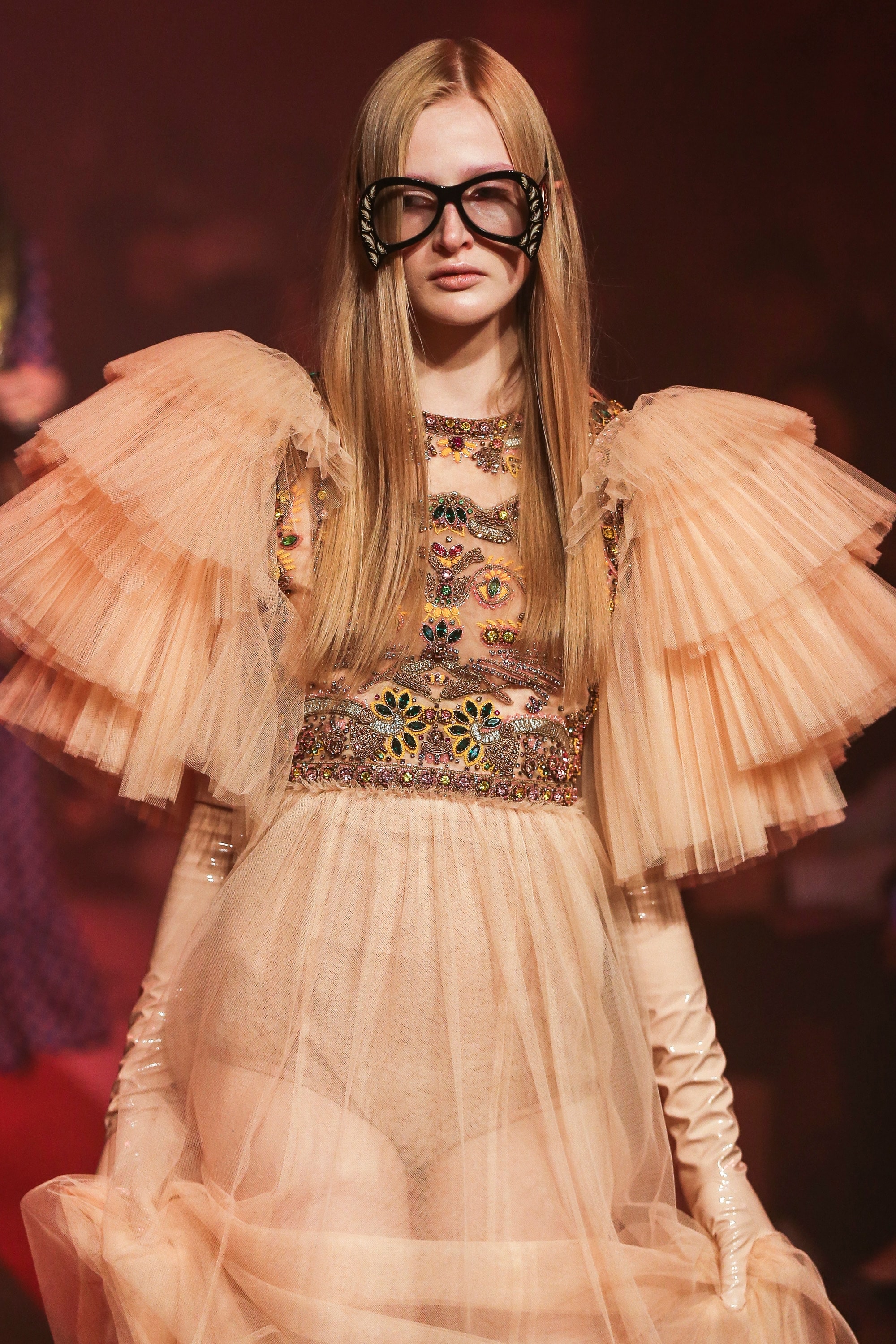 Nel primo giorno della Milano Fashion Week, la Maison Gucci ha presentato la nuova collezione Primavera/Estate 2017, disegnata dal direttore creativo Alessandro Michele. Tra bagliori metallici, zeppe, pantaloni a zampa e abiti dal fascino esotico e vintage, la sfilata si è trasformata in uno show ad alta teatralità. I must have della prossima primavera? Le maniche a sbuffo, i fiocchi, occhiali maxi e capi ispirati agli anni Ottanta.