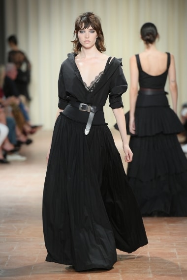 Durante la prima giornata della Milano Fashion Week, Alberta ferretti ha presentato la sua collezione donna Primavera/Estate 2017. La stilista ha portato in scena una linea di abiti dall'impronta gipsy, perfetta per una donna femminile e raffinata, caratterizzata da volumi leggeri, forme fluide, ricami floreali, crop top neri, cinture di pelle multiple e gonne lunghe arricciate e a balze
