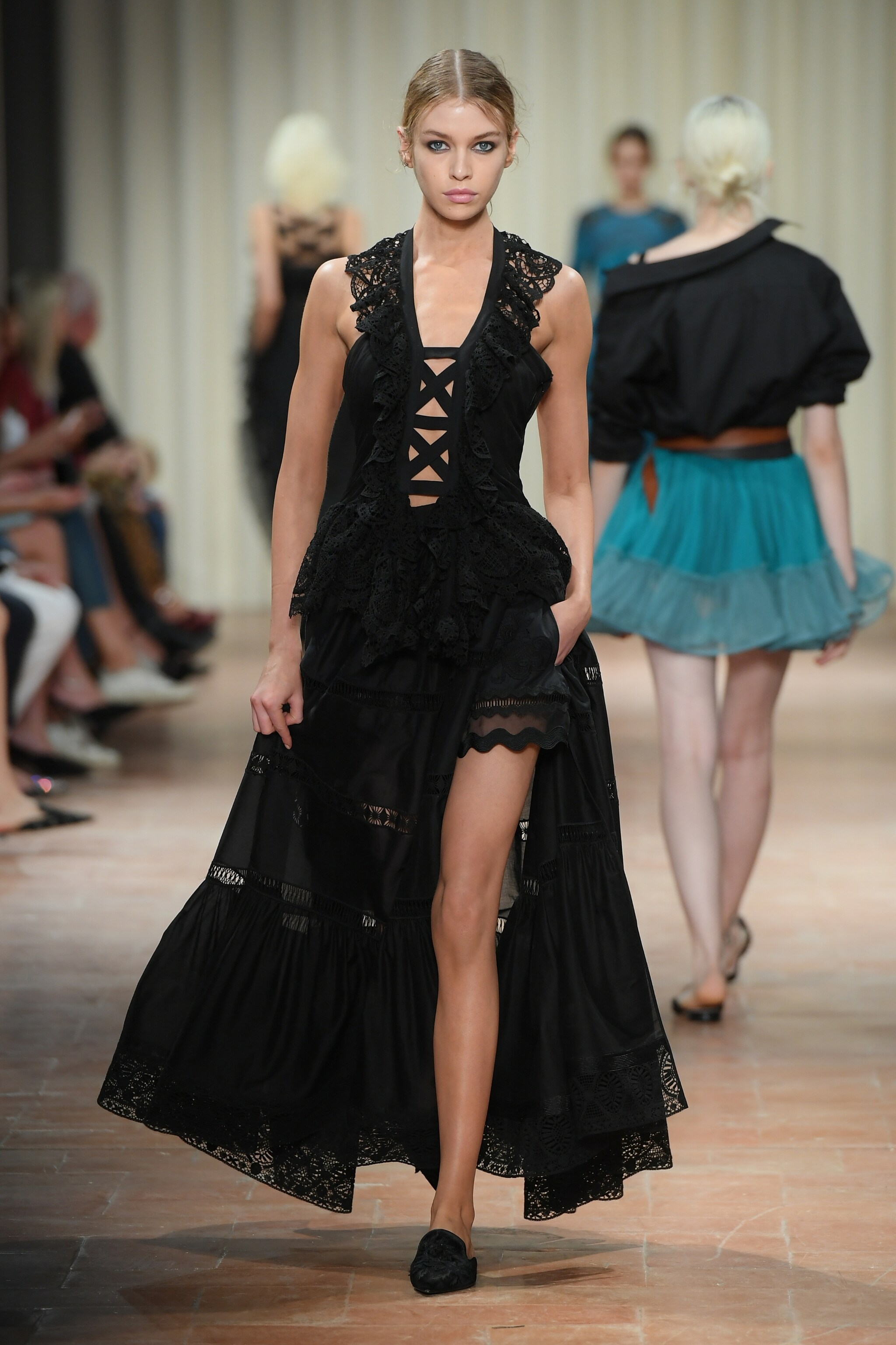 Durante la prima giornata della Milano Fashion Week, Alberta ferretti ha presentato la sua collezione donna Primavera/Estate 2017. La stilista ha portato in scena una linea di abiti dall'impronta gipsy, perfetta per una donna femminile e raffinata, caratterizzata da volumi leggeri, forme fluide, ricami floreali, crop top neri, cinture di pelle multiple e gonne lunghe arricciate e a balze