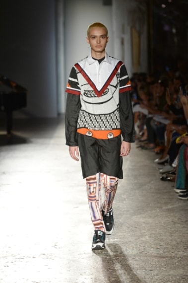 Tute, maxi gonne, camicie, chemisier, polo, sono solo alcuni degli abiti della collezione Primavera/Estate 2017 firmata Stella Jean, presentata a Milano. Tutte le modelle hanno sfoggiato una fascia da capitano, di quelle che si indossano sui campi da calcio, per dimostrare la loro forza, l'energia, la determinazione e la loro caparbietà, ingentilita dalla delicatezza e dall'eleganza dei capi d'abbigliamento.
