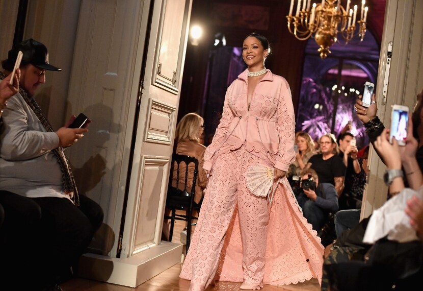 In occasione della Paris Fashion Week, Rihanna ha presentato la collezione Primavera/Estate 2017 da lei firmata Fenty by Puma. La popstar ha anche sfilato con indosso un meraviglioso completo rosa della linea ispirata alla Francia del XVIII secolo.