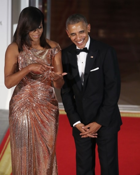 Si è tenuta ieri alla Casa Bianca l'ultima cena di Stato del Presidente Barack Obama. Ad accompagnarlo, la first lady Michelle che, per l'occasione, ha sfoggiato un look impeccabile. Ha indossato un meraviglioso abito Versace che le fasciava la silhouette perfetta e che esaltava il suo naturale charme.