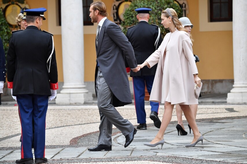 Beatrice Borromeo è incinta del marito Pierre Casiraghi ma, solo in occasione della festa nazionale del Principato di Monaco, si è mostrata per la prima volta in pubblico con il pancione. Ha nascosto le forme "abbondanti" della gravidanza in un completo rosa antico firmato Armani Privè che ha esaltato la sua bellezza da principessa.