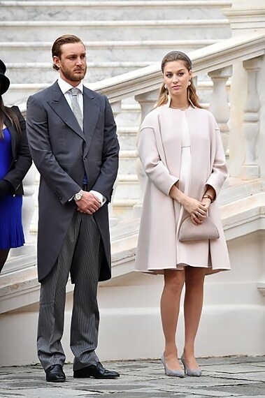 Beatrice Borromeo è incinta del marito Pierre Casiraghi ma, solo in occasione della festa nazionale del Principato di Monaco, si è mostrata per la prima volta in pubblico con il pancione. Ha nascosto le forme "abbondanti" della gravidanza in un completo rosa antico firmato Armani Privè che ha esaltato la sua bellezza da principessa.