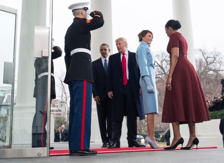 Tra poche ore si terra la cerimonia del giuramento di Donald Trump, che diventerà ufficialmente il 45esimo Presidente degli Stati Uniti. La nuova First Lady, Melania, è apparsa elegante e raffinata in un abito di cashmere celeste firmato Ralph Lauren e ha completato il tutto con un'acconciatura raccolta e degli accessori della stessa tonalità pastello.